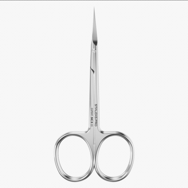 Profesionální nůžky Staleks Expert SE-50-3 s klasickým zahnutím čepelí a úzkým profilem pro snadný přístup ke kůžičce. Ergonomický design a hladký chod minimalizují únavu při dlouhodobé práci.